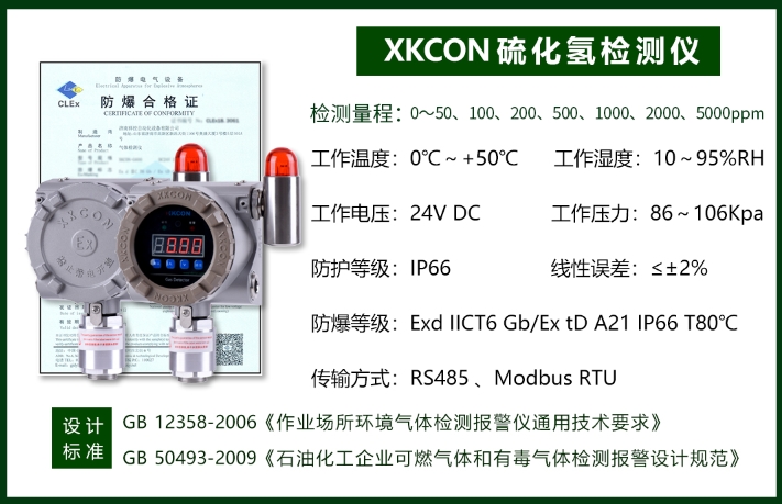我司研制的XKCON祥控硫化氫H2S氣體濃度檢測報警儀依照GB12358-2006《作業場所環境氣體檢測報警儀通用技術要求》等標準要求,可應用在天然氣凈化廠對H2S氣體進行泄露監測。