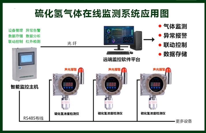 在天然氣凈化廠內通過安裝固定式H2S硫化氫氣體檢測儀組成硫化氫氣體泄露告警監控系統,通過構建H2S應急預案,當出現H2S泄露時,系統會第一時間通過聲光、屏顯、電話等方式進行異常告警,并聯動開啟相關的應急處置系統進行處置。