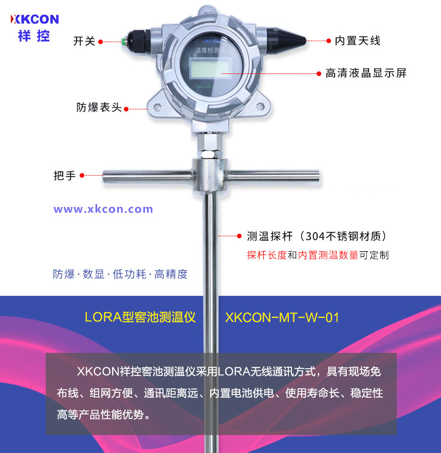 我司研制的XKCON祥控窖池測溫儀采用LORA無線通訊方式,具有現場免布線、組網方便、通訊距離遠、內置電池供電、使用壽命長、穩定性高等產品性能優勢,也被稱為“LORA型窖池測溫儀”。