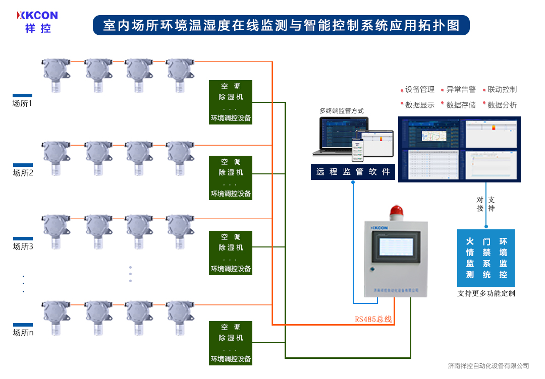 XKCON祥控環境溫濕度檢測儀精度高、性能優,不僅可用在卷煙廠中發揮數據監測和異常告警的功能,也可用在室內環境監測、生產加工過程控制、倉儲管理等領域中,實現溫濕度監測、管理及控制等功能。