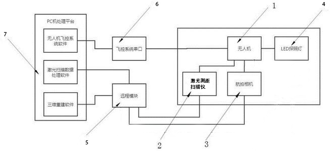 系統以無人機為載體,采用高清(4K)數字攝影技術和差分綜合位置傳感技術實現煤場實景三維重構,即時獲取煤場的空間位置,并同步傳輸到地面站計算機平臺。通過使用三維建模技術和計算機圖形處理技術,對空間位置信息數據在計算機平臺進行三維坐標轉換,重構實景三維模型,還原被測煤堆的真實形狀,科學計算出煤堆體積等數據參數。