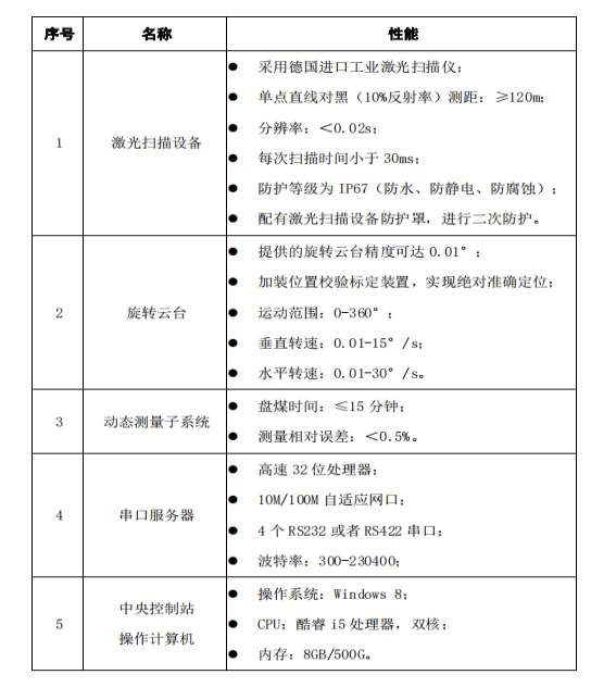 封閉煤倉固定式三維激光掃描儀安裝方案主要包含動態測量系統、中央控制站兩部分。可實現的功能如下: