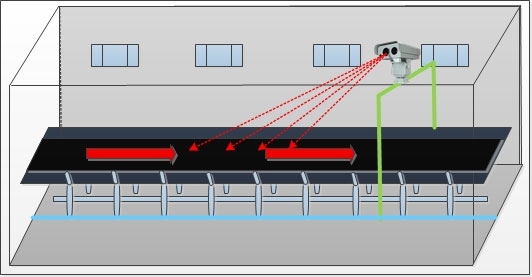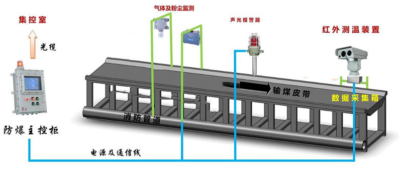 輸煤皮帶通廊安全環境監測系統主要組成部分包括:紅外熱成像在線測溫系統、氣體及粉塵濃度監測系統等。