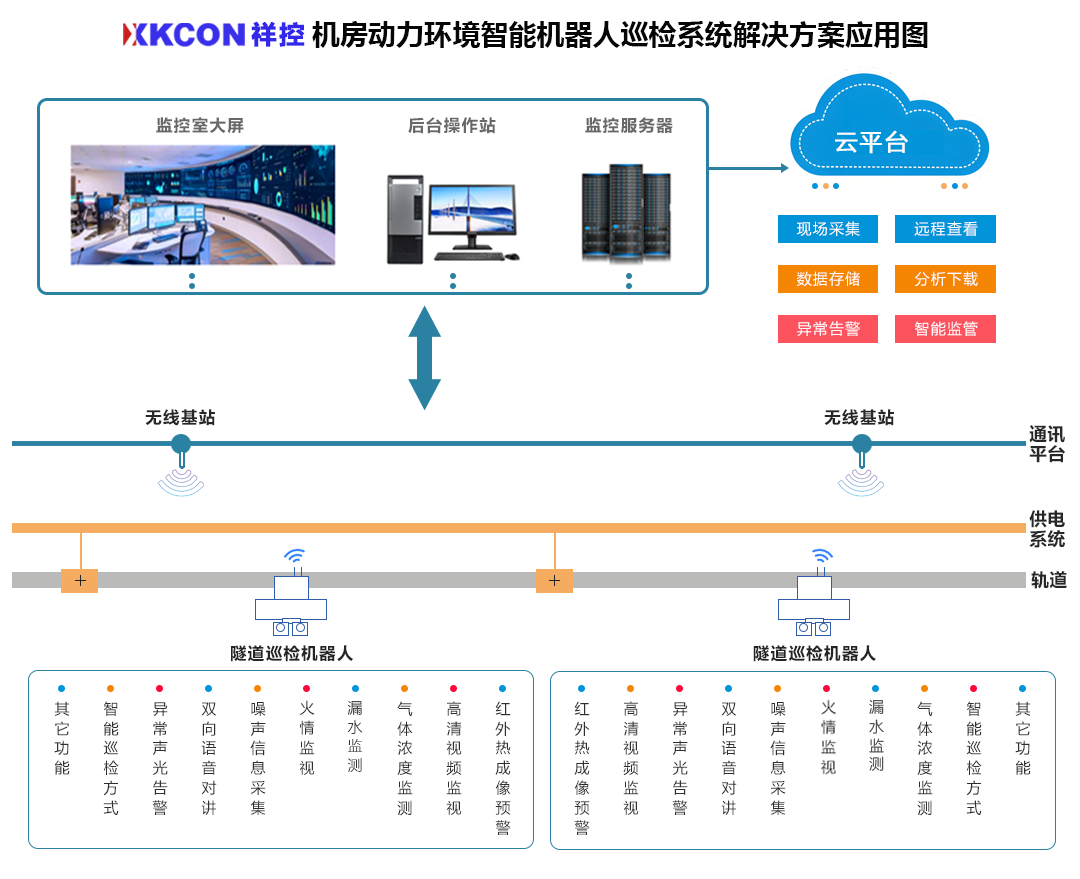 XKKON祥控機房智能軌道機器人巡檢系統(tǒng)具備的功能: