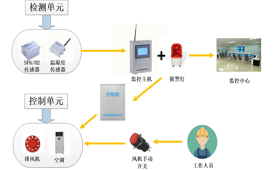 當SF6氣體含量超標(≥800ppm)或氧氣濃度過低(≤18%)時,控制風機啟動通風,且每次通風時間至少為15分鐘。